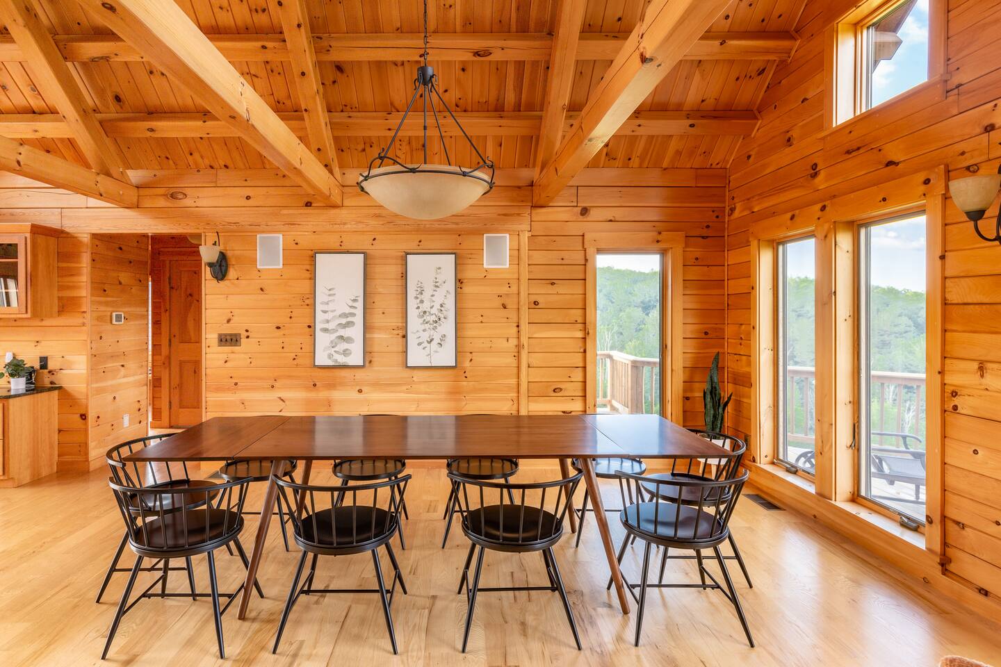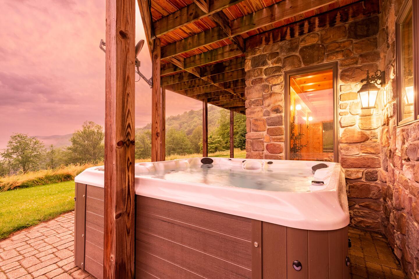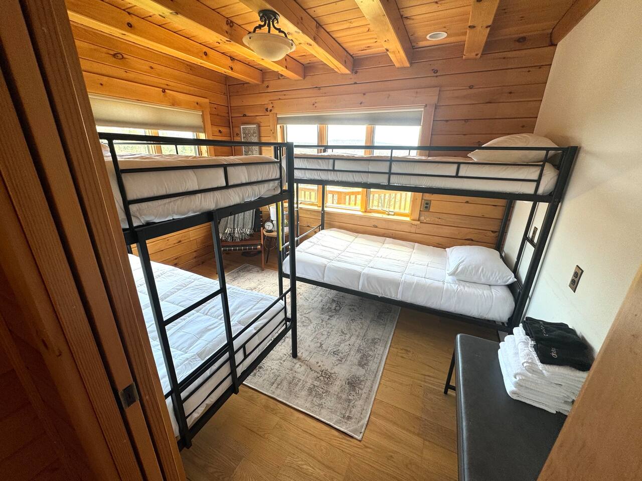 This newly furnished 5 bedroom, 2.5 bath cabin is the perfect family and friends getaway! It has been decorated and designed to be the optimal relaxing space with tons of cozy seating areas. Private Hot Tub! The Breeo fire pit outside, is ideal for cozy fires with friends or family. There's a large front porch, oversized game room, patio, large deck, upstairs and downstairs living rooms, and so much more to explore at this incredible cabin! 1st Floor: - Kitchen (Starter pack supplied: Trash bag, dish soap, dish rags, sponge, detergent tablet - we do recommend you and your family bring extras of these items if you think you will need them.) - Living Room (floor to ceiling fireplace and spectacular views, fireplaces not for guest use) Dining Room (Huge dining table for the whole family) Desk/work area Entryway with plenty of storage Large pantry Large Front porch - Large Deck - Bedroom 1 (Master Suite): Queen Bed w/ a toddler bed in the oversized closet, including a full bathroom with jacuzzi tub and shower Bedroom 2: Two Bunk Beds - Half bathroom accessible from common area Lower Daylight Level: Bedrooms 3 + 4: Queen Bed with a trundle bed for 2 people and attached private room with bunk bed for two people (perfect for a family, sleeping 6 total people between the two connected rooms!) Full Bath accessible through common area - Bedroom 5: Queen Bed - Laundry room - Seating area (with toys, TV and Nintendo for those rainy days) - Queen sleeper sofa - Walkout patio Outside: - Breeo firepit area (wood provided) - Oversized Game Room with arcade games, ping pong, foosball and lounge area (not heated or cooled, but you can open the doors to let that cool mountain breeze inside) - HOT TUB - Yard space